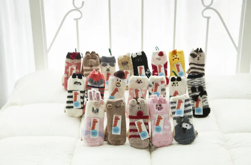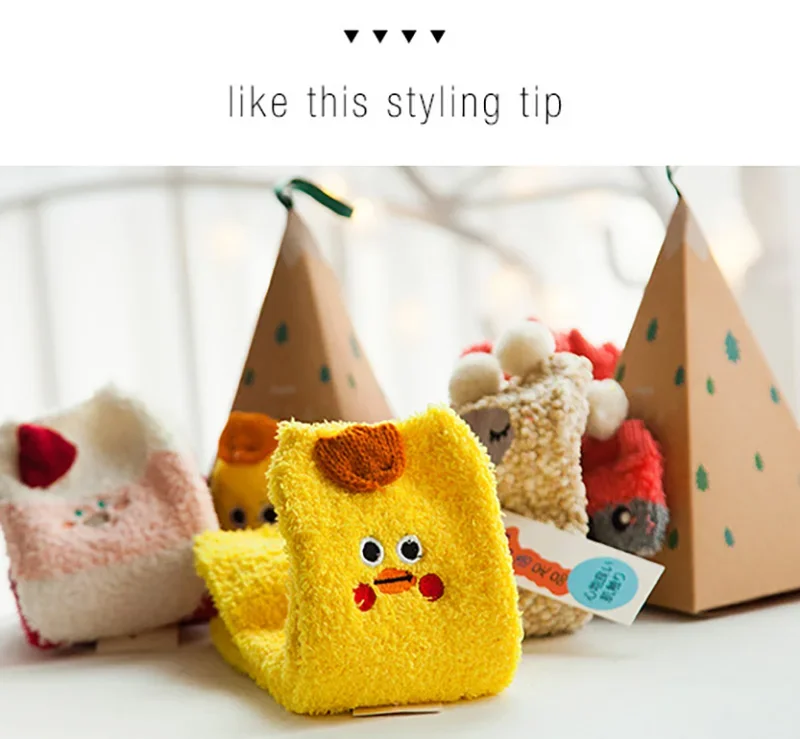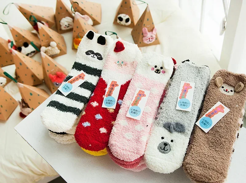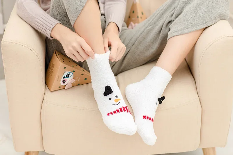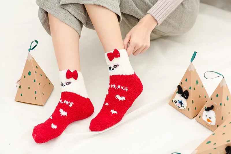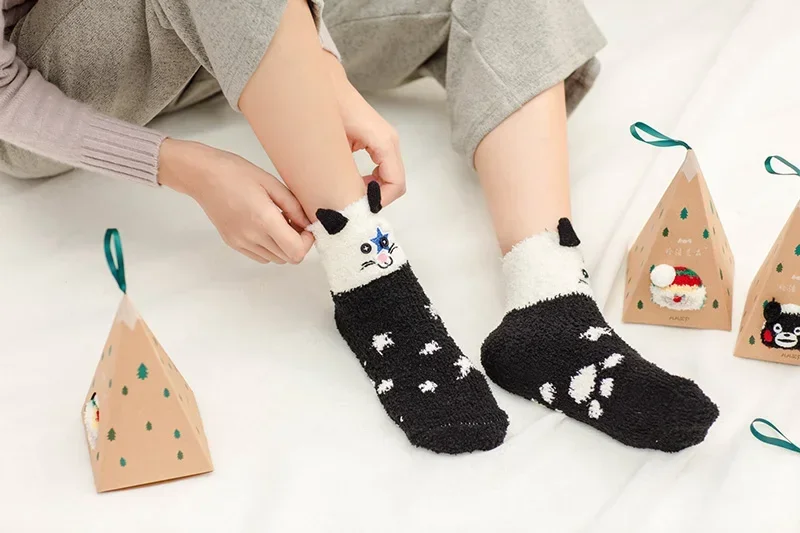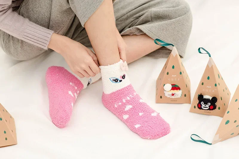 1 Pairs Box Christmas Socks Women Cute Thermal Fluffy Fuzzy Soft Velvet Thermo S
