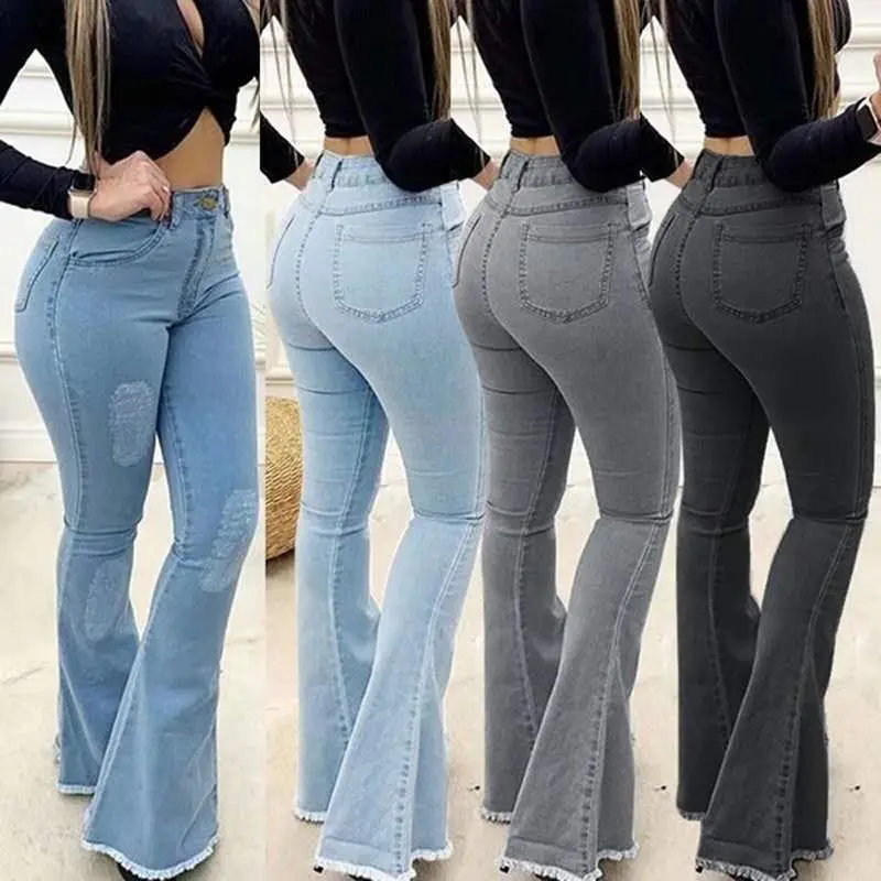 2024 New Women High Waist Boot Cut Jeans Fashion Slim Denim Flared Pants Street