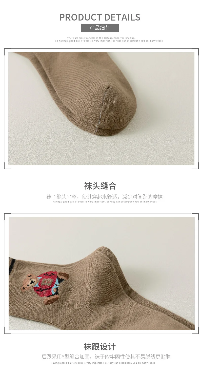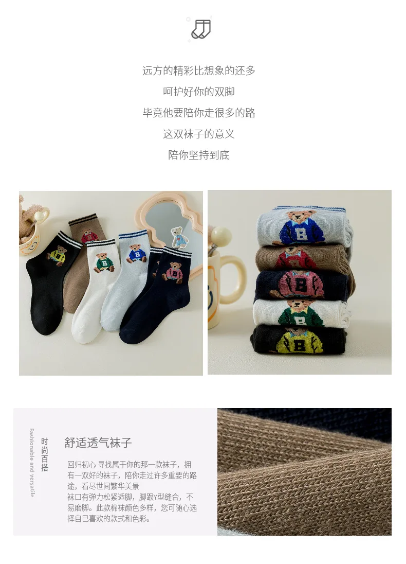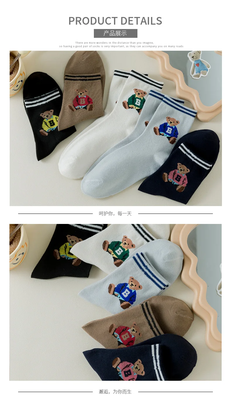 5 Pairs Women's Socks Fall Trend Striped Letter Bear Cartoon Harajuku Cute Kawai