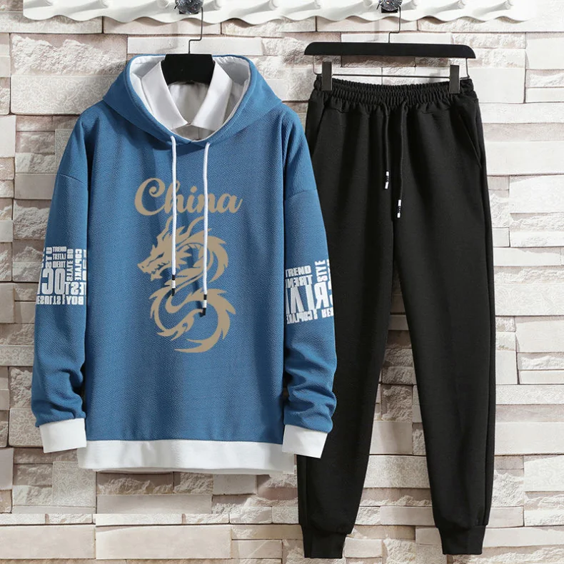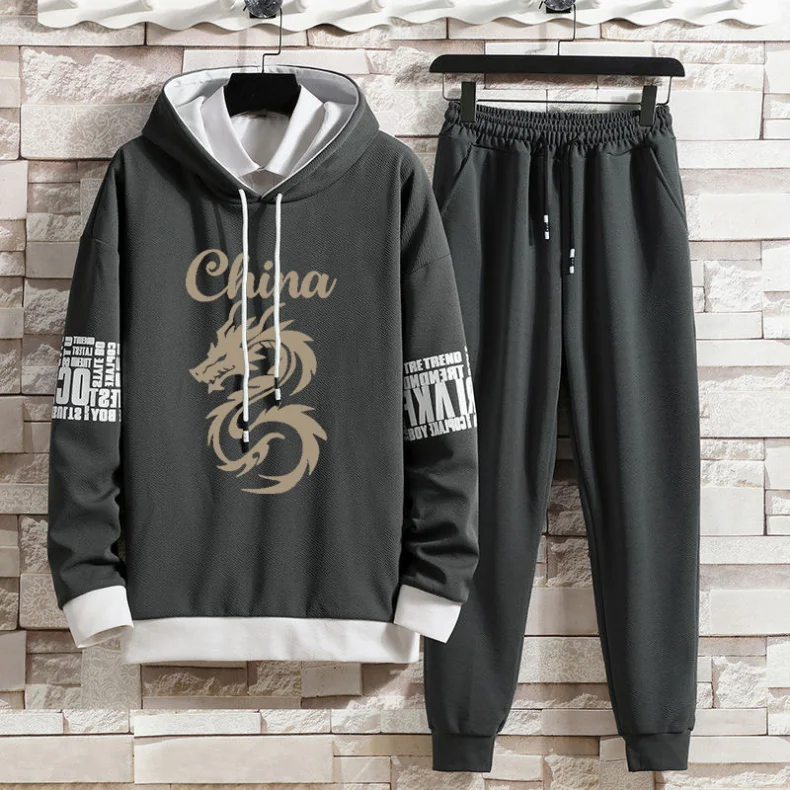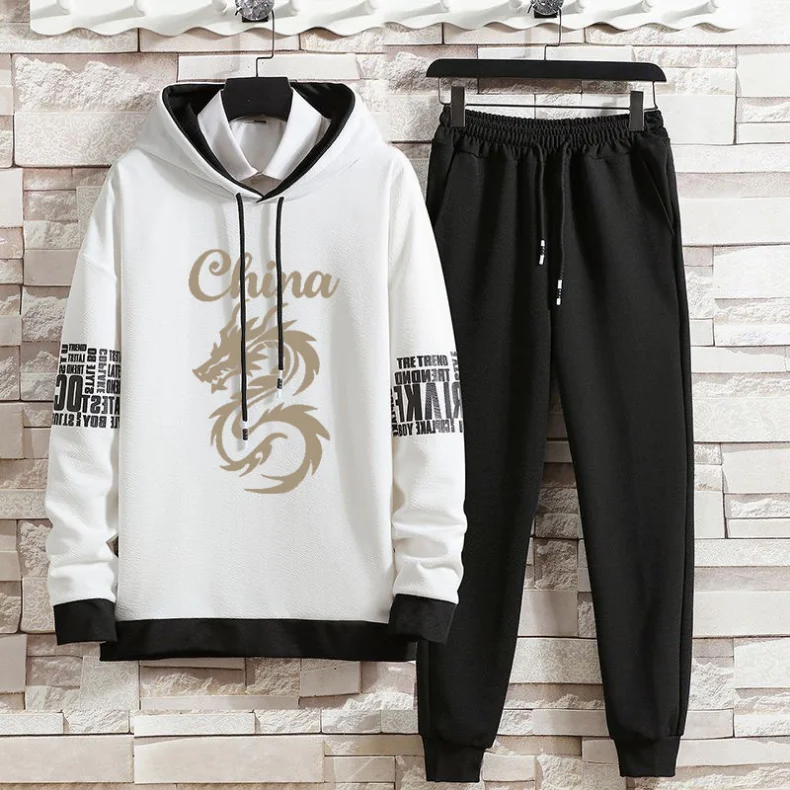 Casual Suit Men's Autumn New Print Trend Hoodie and Sweatpants Sports Casual Two