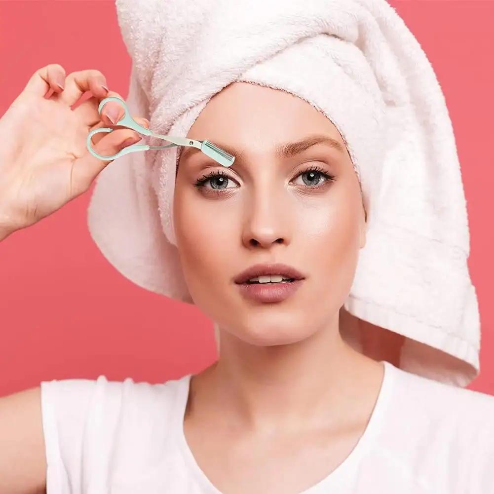 Eyebrow Trimmer Scissor Colorful Stainless Steel With Accessories Makeup Removal