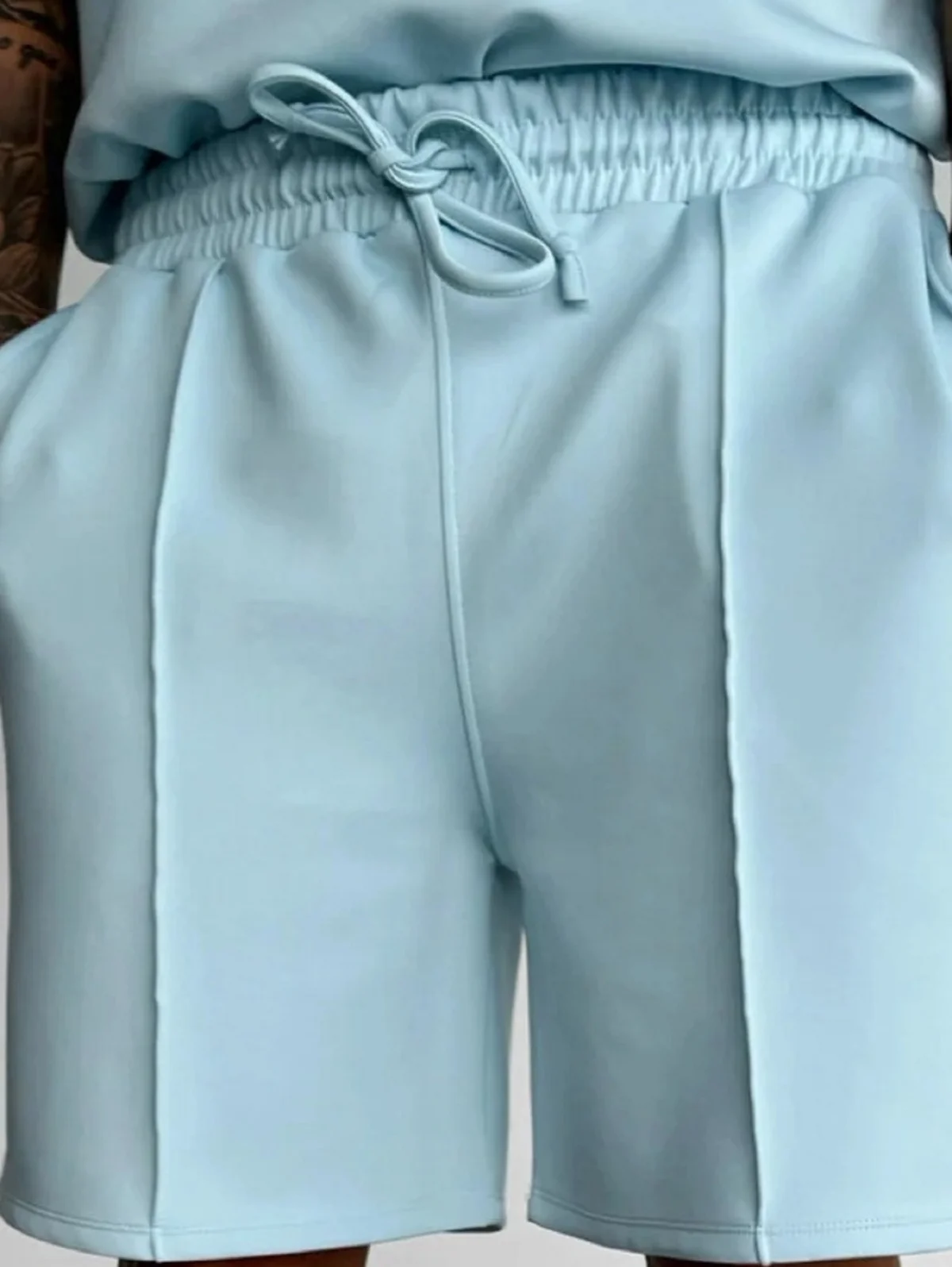 Men cross-border 2025 explosive summer fashion casual solid color pocket draw ro