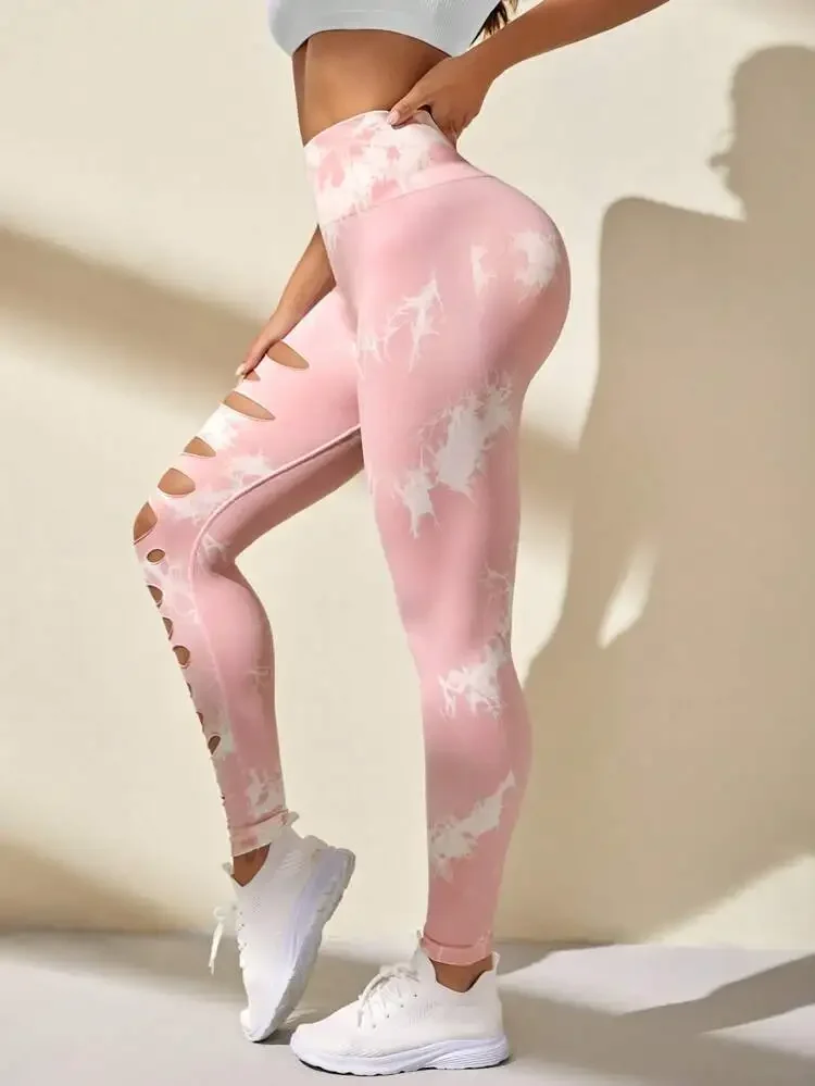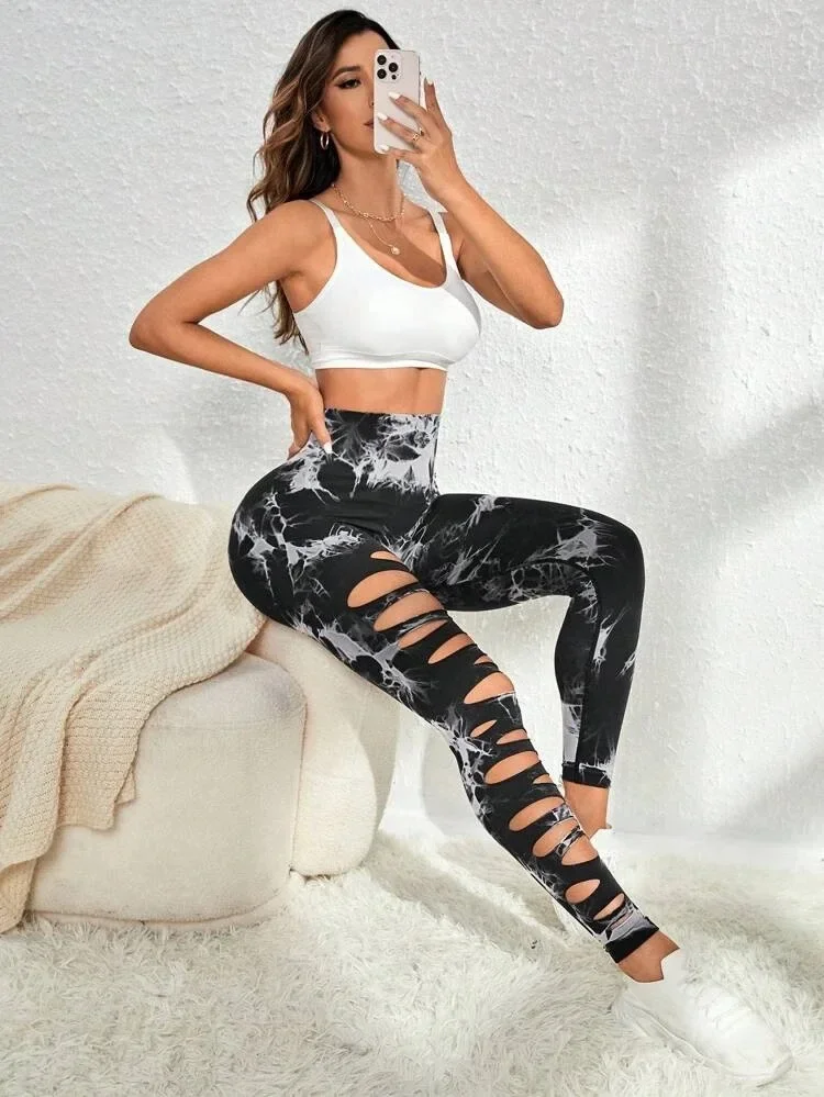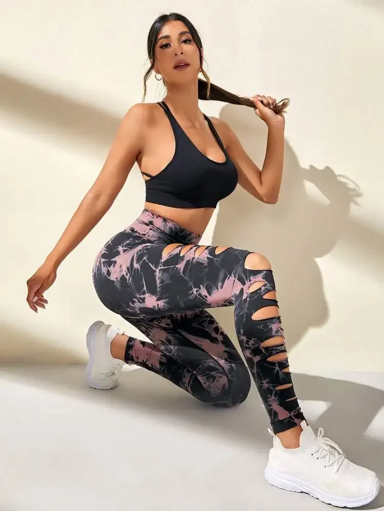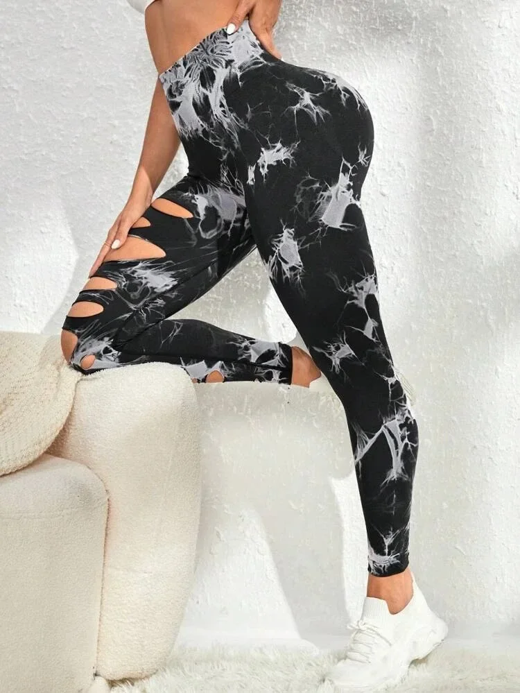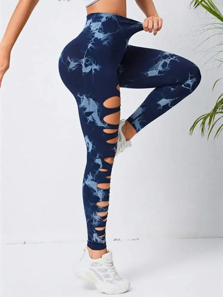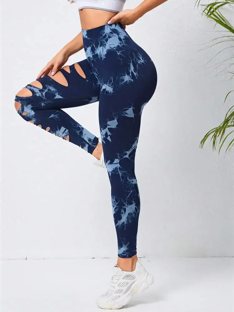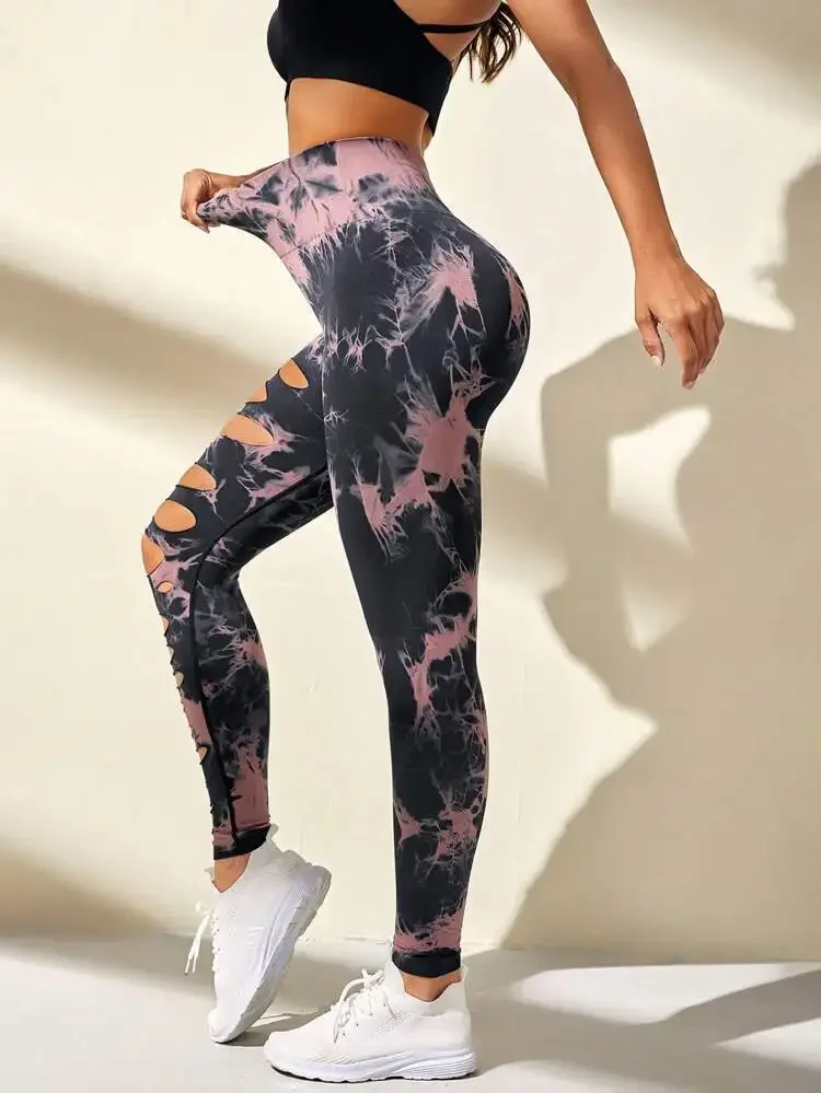 Tie Dye Yogo Gym Leggings Women Seamless Sport Tights Leggings High Waist Hollow