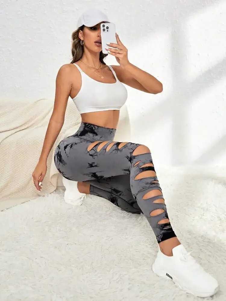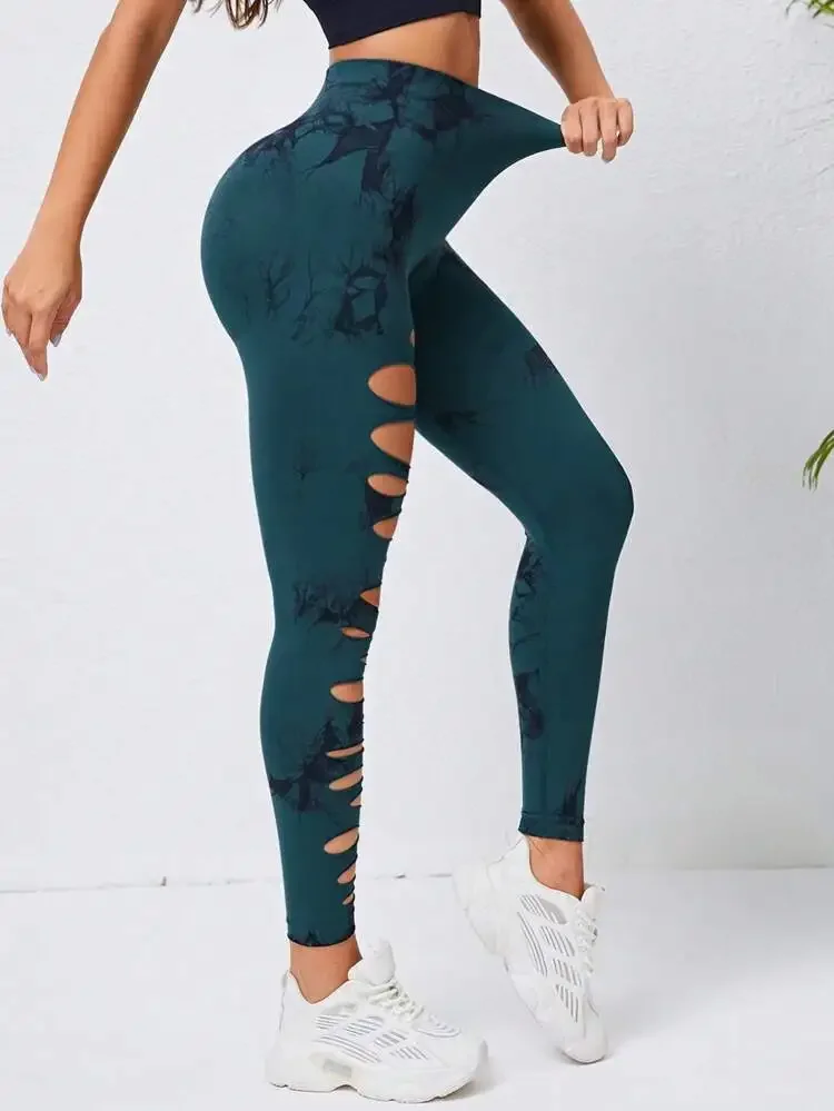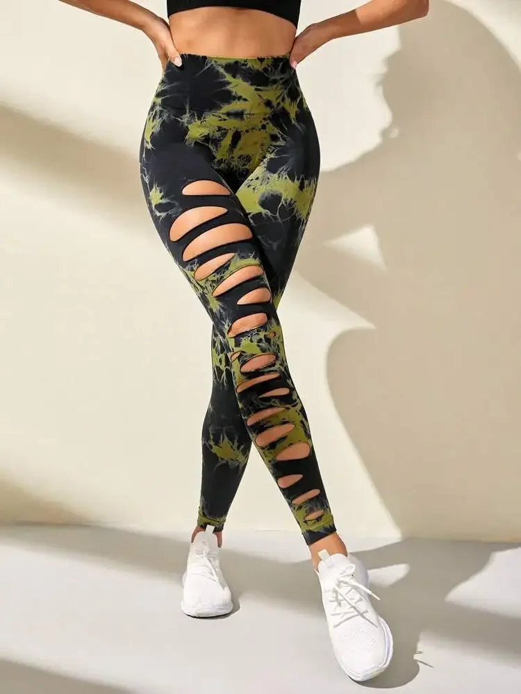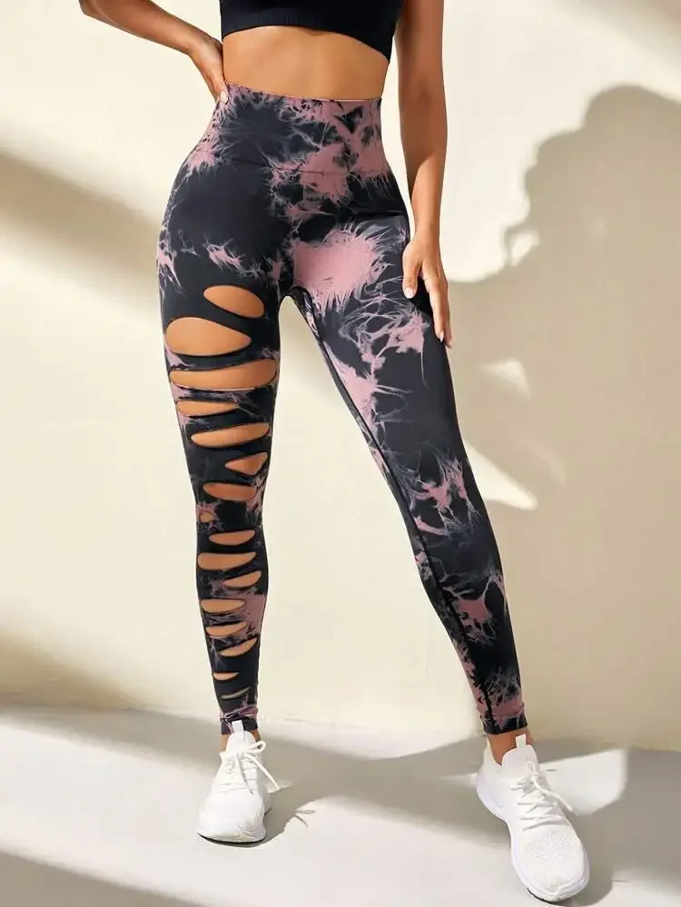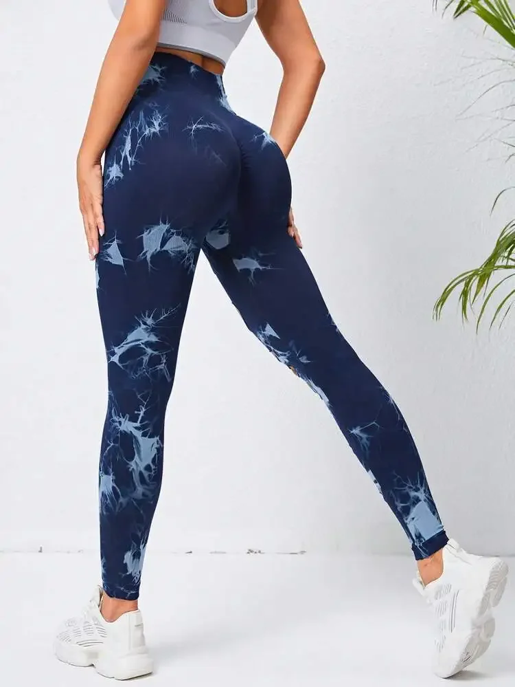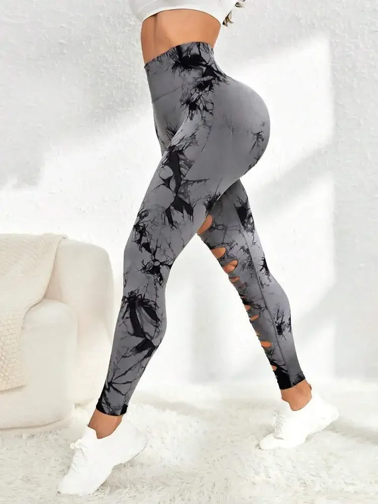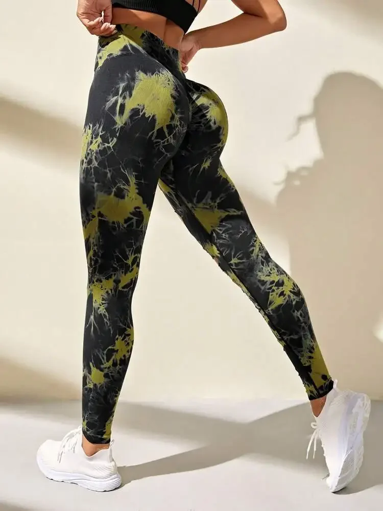 Tie Dye Yogo Gym Leggings Women Seamless Sport Tights Leggings High Waist Hollow