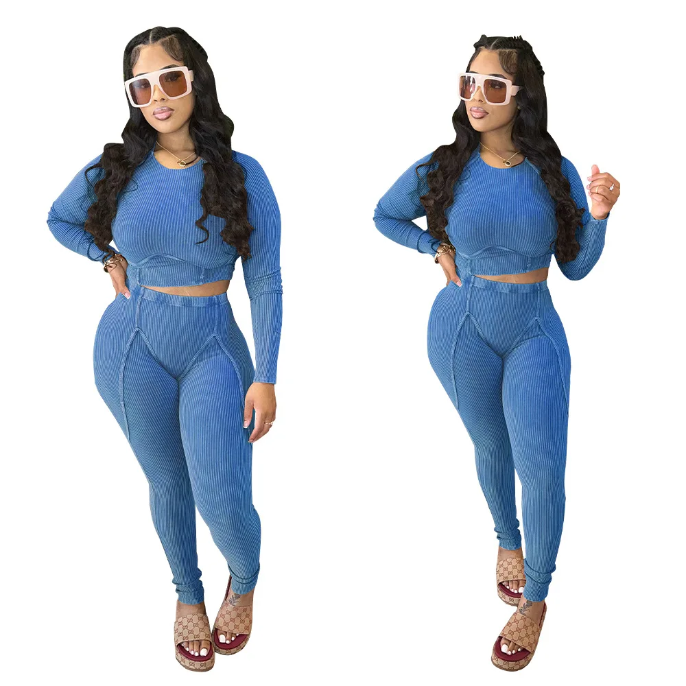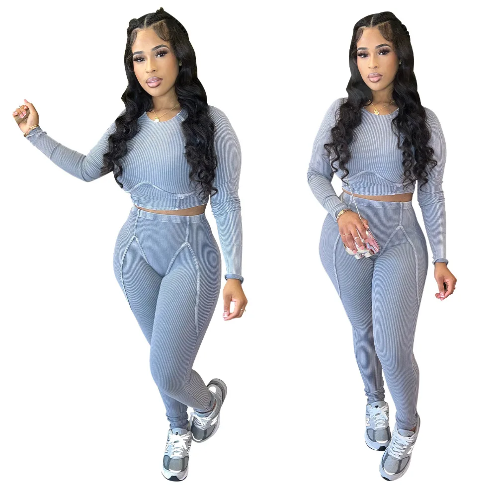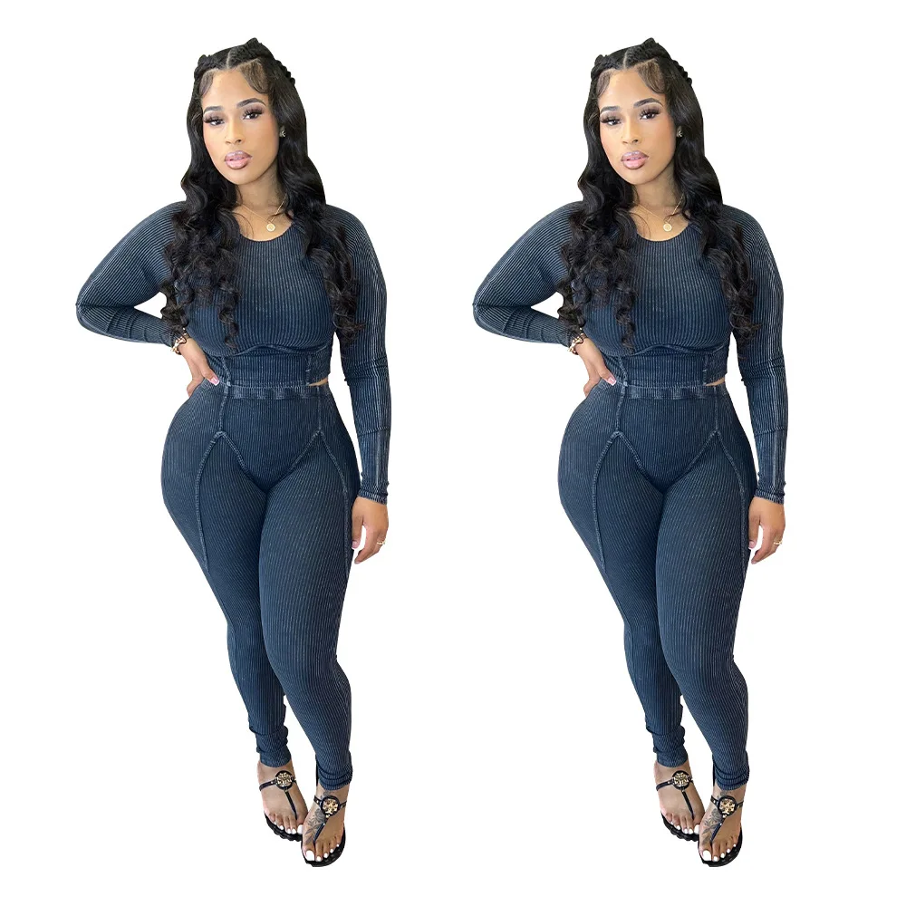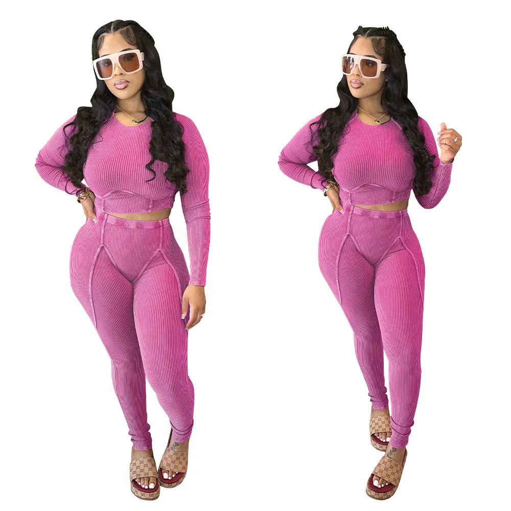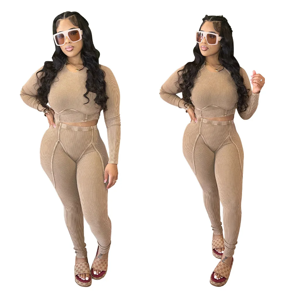 Workout Custom Two Piece Fitness Knit Pant Sets Wholesale Casual Women Ribbed 2